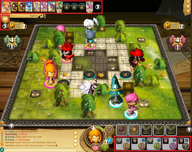 の5種類がある。キャラクターが既にPowerとして持っているものをダイスによって付与することはできない。出た目をすぐ上に表示されるキャラクターカードにドラッグする事で付与する事が出来る。ドラッグ時にカードが暗くなるものは付与出来ない事を示している。ダイスロールをした際、同じ目が二つ出た場合(Dofusで選んだものも含む)、お互いのGGトークンが-1される。お互いのGGトークンが残り1の状態でこれを行った場合、行ったプレイヤーのGGトークンが先にマイナスされ敗退する。