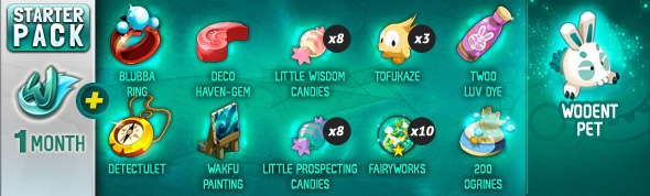 | Booster 30 Days | 3.000 Ogrines | 経験値30% ドロップ率10% Kama30% ダンジョントークン2倍 | セカンドキャラクターの経験増加 回復薬一括使用 特別エリアへのアクセス権(未実装) | Mystery Box ×1 |